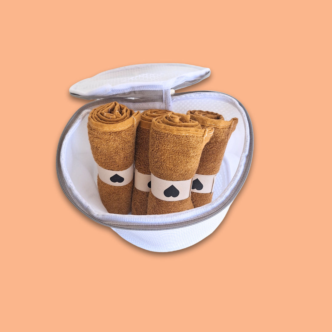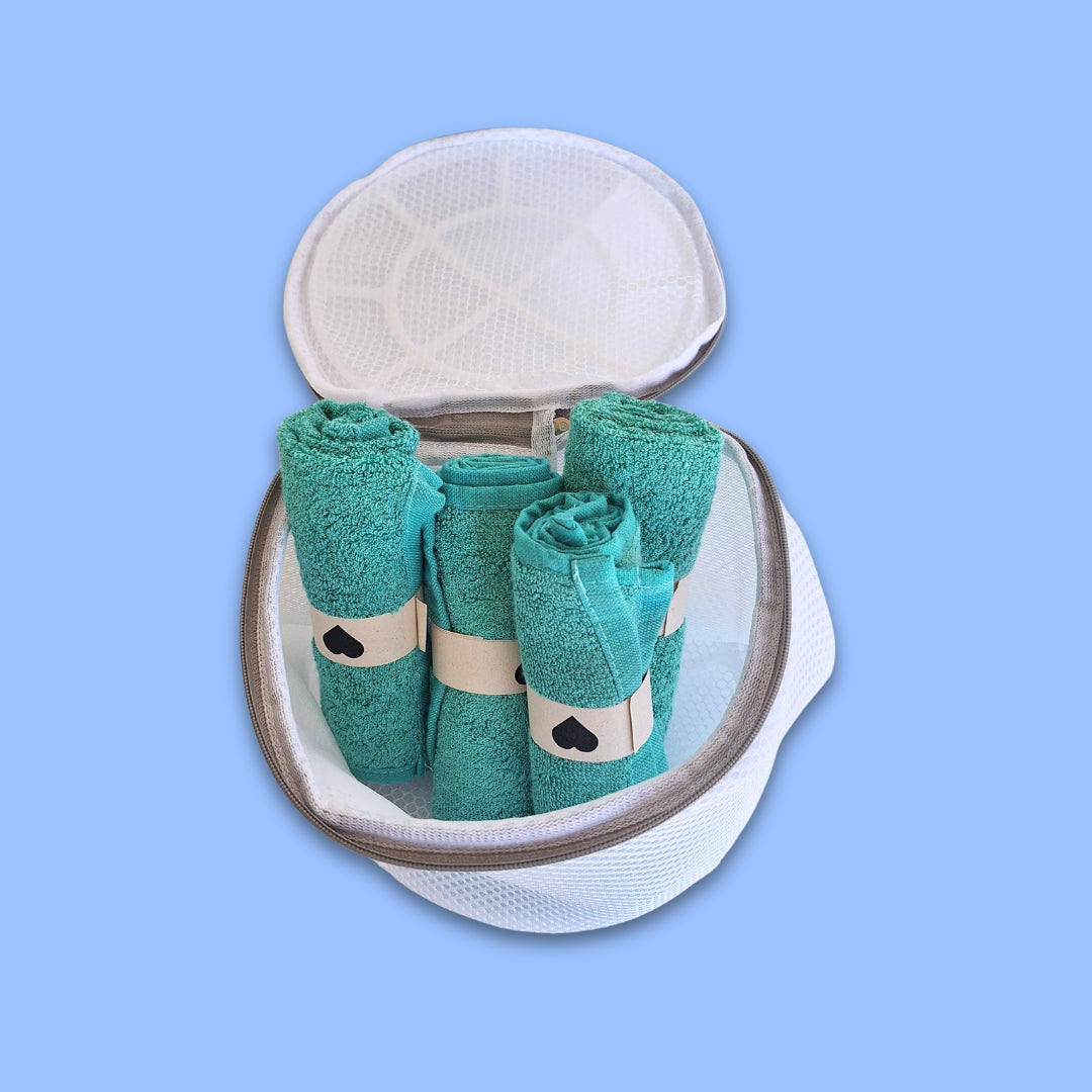 El pack incluye 4 toallas 100% de bambú antibacteriano, provenientes de bosques sustentables. Además por TIEMPO LIMITADO te regalamos una bolsa de lavado para tus toallas.